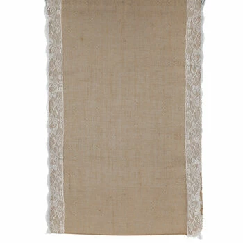 Add a stunning vintage touch to your wedding, party, shower or everyday home decor with Burlap & Lace Table Runner! This charming table runner features natural burlap with dainty floral lace along either side. Complete your shabby-chic country-themed wedding with this classic touch!