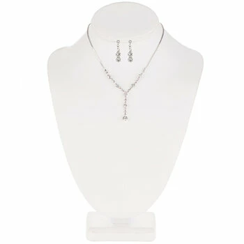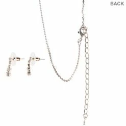 Add a bit of glam and sparkle to complement wedding attire with this stunning Dangle Rhinestone Necklace & Earrings. The necklace features a silver chain with a gem dangle accent, and the earrings feature large rhinestones with dangles. Get the perfect finishing touches on your wedding attire!