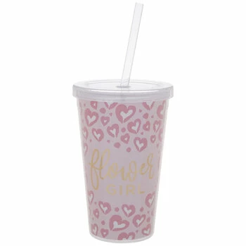 Give even the smallest member of your wedding party a token of your appreciation with Flower Girl Heart Cup. This BPA-free, double-walled cup features a sturdy plastic construction with pink and white hearts and the words “Flower Girl” printed in gold foil across the front. With a screw-top lid and a plastic straw with a built-in stopper, fill it with juice, water, and more for the flower girl to sip in style before and long after the wedding.