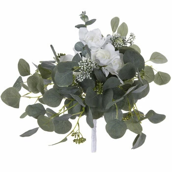 Walk down the aisle with this gorgeous floral piece! Gardenia & Eucalyptus Bouquet features a white satin ribbon-wrapped stem, light green plastic branches, textured dark green fabric eucalyptus leaves, small white buds, and lovely white gardenia blooms. Hold onto this arrangement tightly and walk to the stage in style!