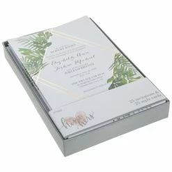 Your special day is fast approaching, so prepare with a stylishly modern invitation! Gold Foil Geo Botanical Wedding Invitations feature a clean white background with gold foil geometric lines and green leaf designs for a botanical look. Complete with coordinating response cards, this set has everything you need to get started. Customize the invites by printing your information on the cards, and send these stylish cards to all your guests!