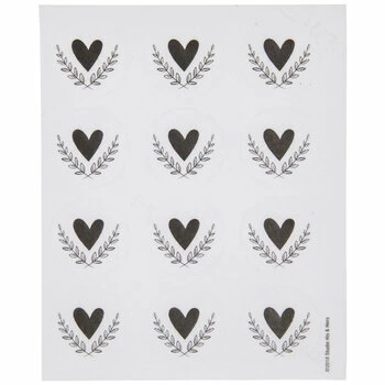 Sealed with love! Heart & Branches Envelope Seals features a clear plastic background with a black and white design of a filled-in, black heart with two olive branches crossed underneath. Place these sweet circle shaped labels over bridal shower or wedding invitations!ย ย