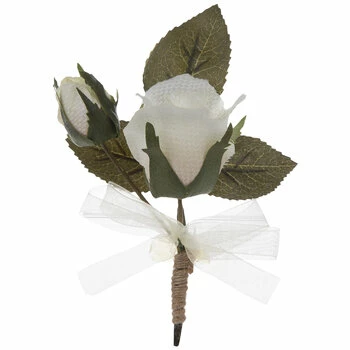 Add a stunning, long-lasting accent with Ivory Fabric Rose Corsage! Featuring an ivory fabric flower, green leaves, a natural jute-wrapped stem, and a sheer ivory ribbon, this corsage is perfect for weddings, proms, and more. Top off a darling wedding with slightly rustic creations!