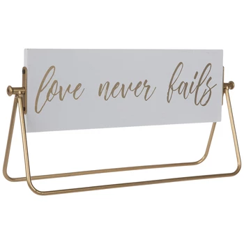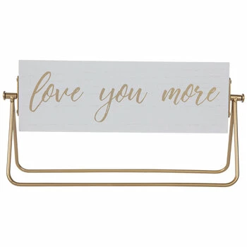 Post messages that fit the mood with accents like Love You More Rotating Wood Decor. This MDF piece offers a white panel with metallic gold lettering and a gold metal stand. With a double-sided design that can be rotated depending on what you’d like to say, this will be a wonderful addition to your ceremony or reception!
