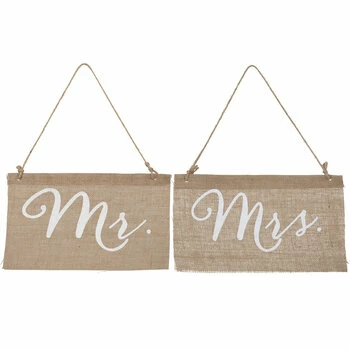 You and your love are about to tie the knot, so mark where you will be sitting at your reception with Mr & Mrs Burlap Chair Signs. Each of these signs feature a burlap rectangle with “Mr.” and “Mrs.” printed on the surface in elegant, white text. Hang them on the backs of your chairs, and coordinate them with the rest of the decorations for a rustic theme.