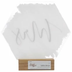 Use this Mrs Table Decor to create a special space for the bride! The decor features a wood rectangle base and a clear, hexagonal acrylic sign. The sign features a white painted background with gold text that reads, “Mrs.” Place this decor at the bride and groom’s table to elevate the celebration of their marriage!