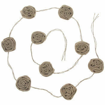Add a delicate and beautiful touch to your next event with Natural Burlap Rose Garland. This adorable garland boasts dimensional, three-inch rose shapes created from burlap, attached to jute string. Hang it above a treat or gift table, and create a wonderful celebration worth remembering!