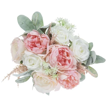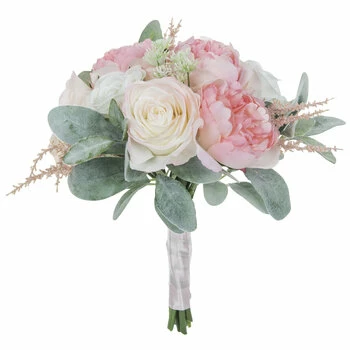 Express your feminine side and beautiful style with Soft Pink Rose & Peony Bouquet! Boasting beautiful rose and peony blooms of pale pink and white among soft lamb’s ear and other floral pieces, each with green plastic stems, this incredible bouquet has the realistic look you adore. Slip it into a vase, carry it down the aisle as your wedding bouquet, or disassemble it to use the flowers in different crafts!