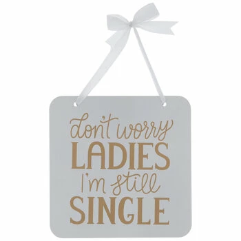 Bring humor to your big day through accessories like Still Single Ring Bearer Wood Sign. This MDF piece offers a white base, gold lettering, and a white silk ribbon. Have your ring bearer hold this sign as they walk down the aisle for an adorable photo op that everyone will adore!