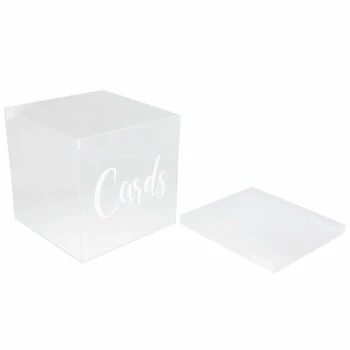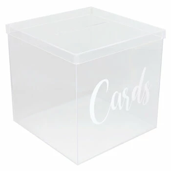 Get everything right on your special day, even down to the little practical things with this Transparent Cards Box. This clear acrylic box sports a thin opening on its removable lid to accommodate card-shaped objects. Plus, there is white calligraphy on the front edge of the container. Set it out on a table with coordinating cards and pens for a lovely way to collect memories!