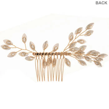 Vine Rhinestone Hair Comb will ensure that you create a unique hairstyle for your special day! Featuring a gold colored metal comb with bendable wires with leaf shaped rhinestones, this comb can be customized and embellished any way you see fit. Glide it into your perfect wedding day hairstyle!