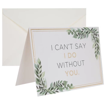 You can’t twirl into your special day without those that mean the world to you, so ask your friends to participate in your wedding with Wedding Party Cards. These beautiful paper cards feature three styles with an assortment of wedding-themed text, gold foil accents, and green leaf designs. Pen heartfelt notes inside to each person, and start planning the fun!