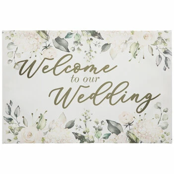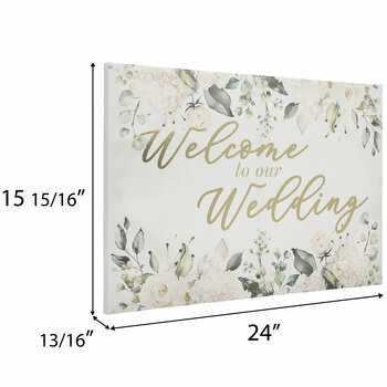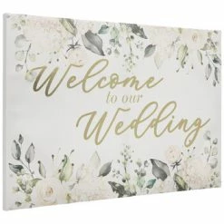 Create a dreamy greeting for your special day with this Welcome To Our Wedding Canvas Wall Decor. The cream canvas features a gorgeous design of pastel pink and green flowers along the top and bottom. “Welcome To Our Wedding” is written at the center of the piece in metallic gold text. Hang this lovely wall decor for all of your guests to see as they arrive to celebrate your marriage!
