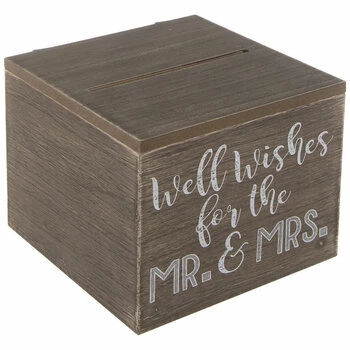 You are embarking on an incredible journey together. Make the most of it by taking advice from those you love. Featuring a whimsical white quote on the front, Well Wishes Wood Box is perfect for holding lots of little slips of paper with wishes and love from all of your wedding guests. Set out colored paper and pens, and let your friends and family fill up this brown, wood box with fun notes.