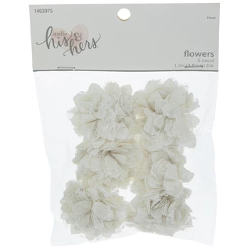 Accent your gorgeous wedding crafts with White Canvas & Lace Flowers. These delicate flowers feature layers of white canvas and lace attached together to make for a richly textured bloom shape. Use your favorite adhesive to stick them to cards and other crafts for a fantastic floral accent!