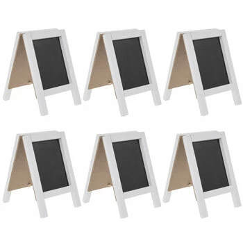 Use these chic, modern White Wood Chalkboard Easels to display guests’ names or table numbers, to label menu items, and more! This stylish, simple MDF piece features a standard easel shape with rectangular writing surfaces on either side and a white painted frame. Perfect for tabletop display, this chalkboard will make a unique, stylish accent at your wedding, party, or shower!