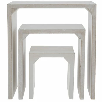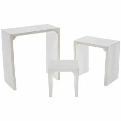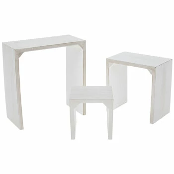 Add a rustic touch to dinner tables and accent tables at your special event with this Whitewash Wood Centerpiece Riser Set! These MDF risers have simple planked shapes with reinforcements under each corner. Their whitewashed color contributes to their farmhouse-ready look! Use them to elevate centerpieces and layer your wedding decor.