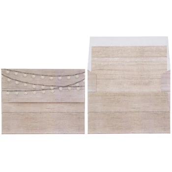 Let your guests know how much you appreciated their presence when you send out Wood & Lights Wedding Thank You Notes! These matching envelopes and cards boast brown wood-grain panel designs with fairy lights and black text that says “Thank You From The New Mr. & Mrs.” Fill them with personalized messages and send them out to makeย a lasting impression!